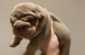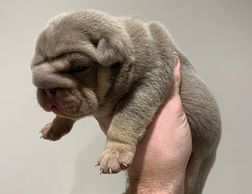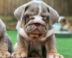 Woolly Mammoth is a male VISUAL FLUFFY ENGLISH BULLDOG. He is a full suit lilac tri. Woolly is 13 1/2 weeks old and is HEALTH TESTED CLEAR. AKC paperwork and full breeding rights. He has extreme potential to be a top fluffy stud, because its such a new thing there are not many fluffy studs available right now.