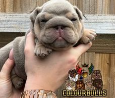 The only Lilac Merle female in the Lady Di and Capo litter, short and stocky budles of rolls with the most incredible Merle pattern.