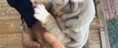 Penelope & Nemesis son and our KEEPER. The only completely solid fully suited lilac and tan puppy in the litter. Keep a look out for this boy on our page in the future he’s going to be INSANE!
