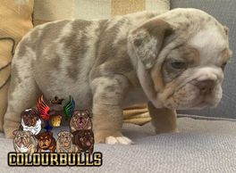 One of Two beautiful Lilac Merle boys, both boys have the most incredible spread out merle patterns.